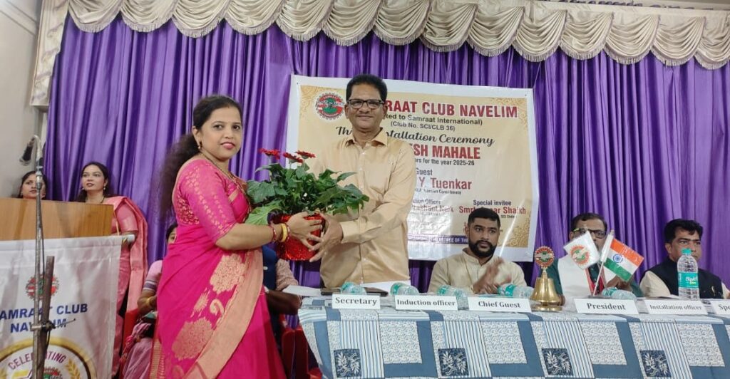Navelim MLA Ulhas Tuenkar was the Chief Guest for the event. The ceremony saw Dinesh Mahale take charge as the new President of the club for 2025-2026. The club’s founder and outgoing President, Aditya Bidre, officially handed over the responsibility to him.