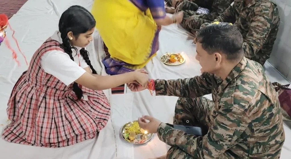 Navelim, August 10 – In a heartwarming celebration of Rakshabandhan, the Samraat Club Navelim, local schools, social organizations, and institutions across South Goa, came together to honor the brave jawans at the Military Camp in Navelim.